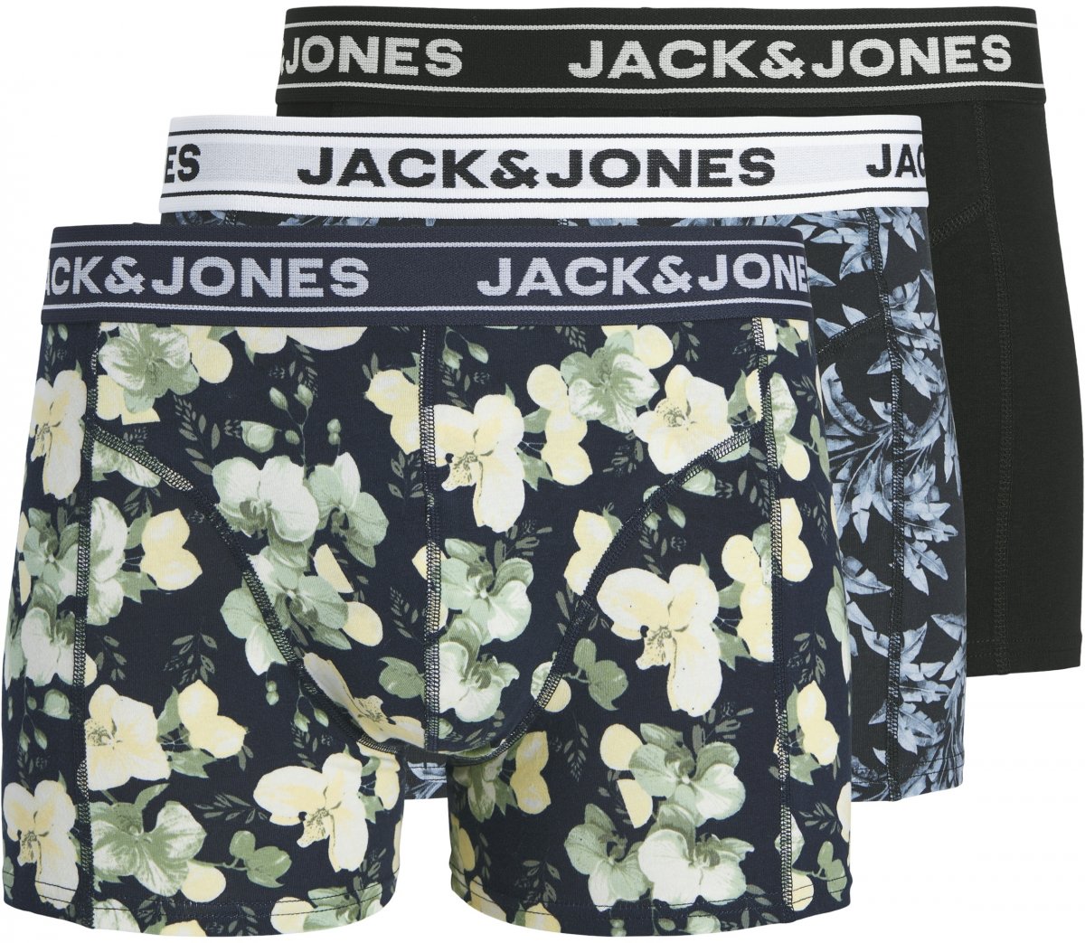 Dydžių vadovas - Jack & Jones Acray Flower Boxers 3-Pack Black/Navy