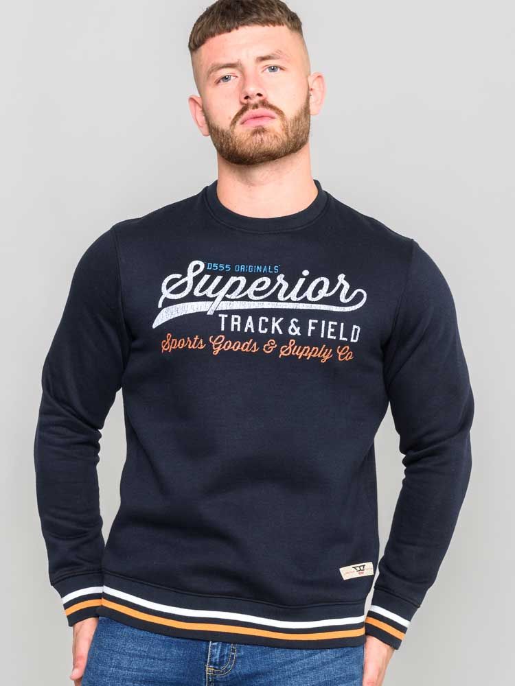 Dydžių vadovas - D555 Marlow Printed Crew Neck Sweatshirt Navy