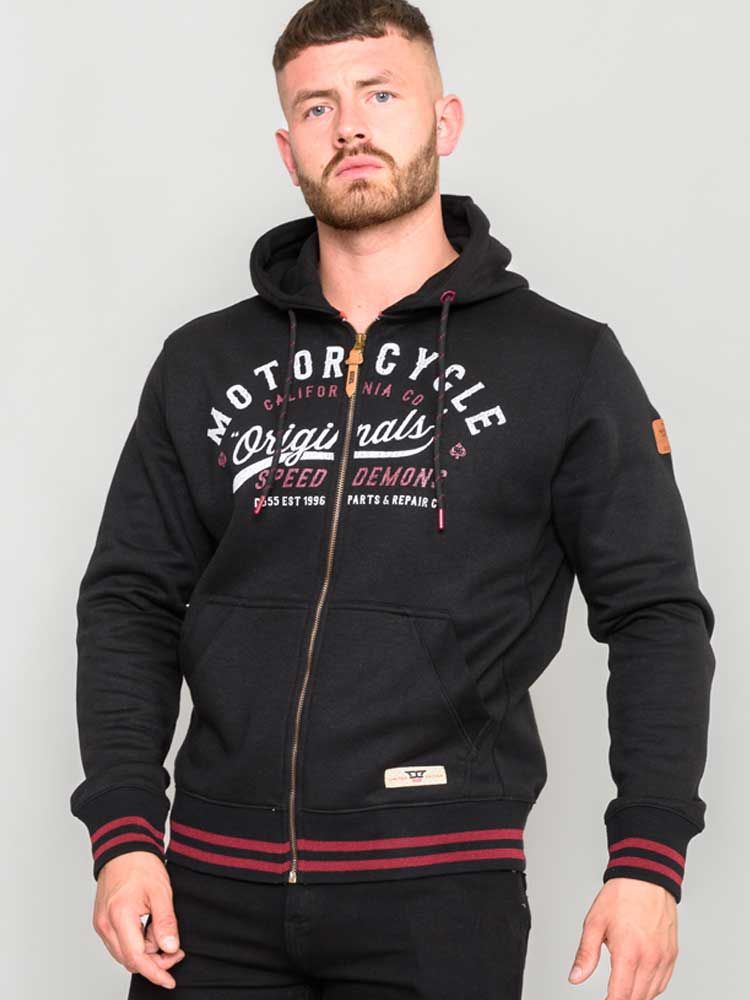 Dydžių vadovas - D555 Patrick Full Zip Hoody With 'Motorcycle' Chest Print