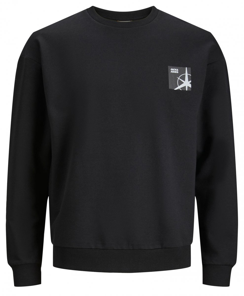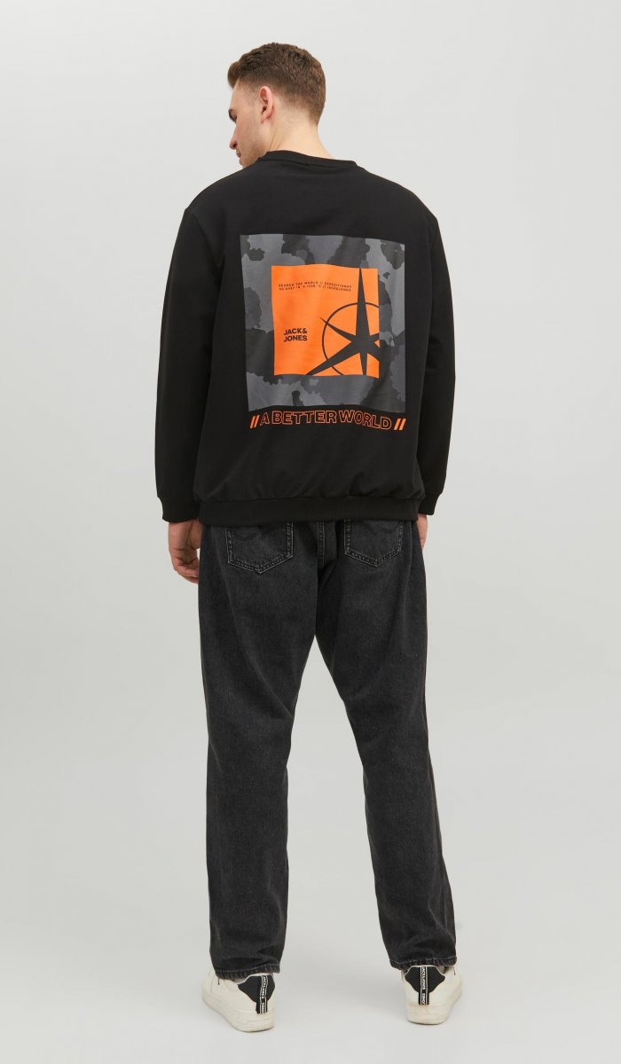 Dydžių vadovas - Jack & Jones JCOFILO Crew Neck Sweater with Back Print Black