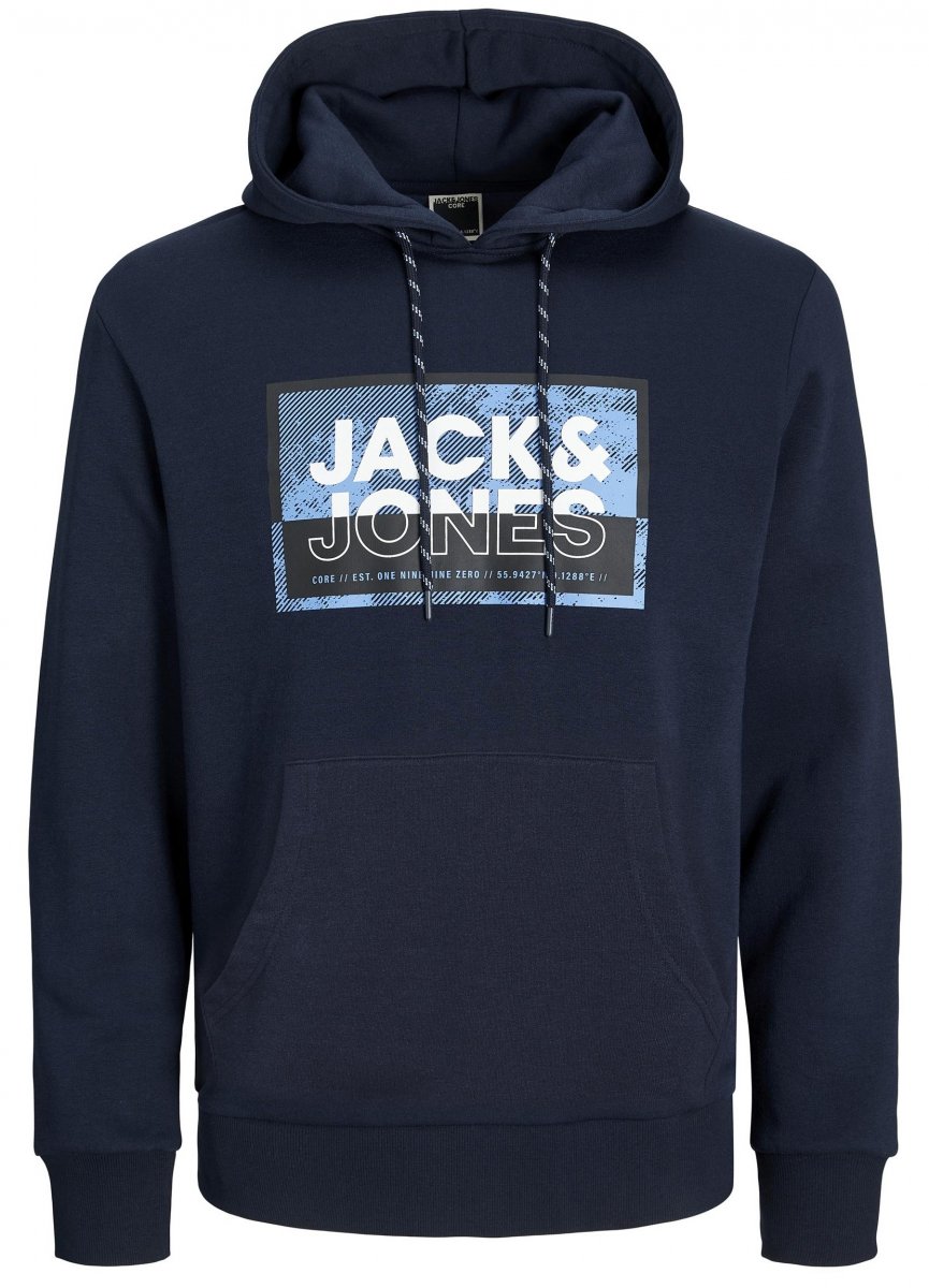 Dydžių vadovas - Jack & Jones JCOLOGAN SS24 PRINT Hoodie Navy Blazer