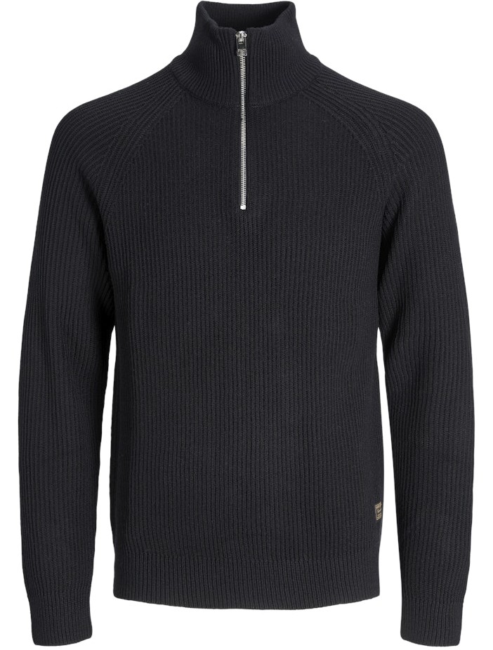 Dydžių vadovas - Jack & Jones Pannel Knit Half Zip Pullover Black