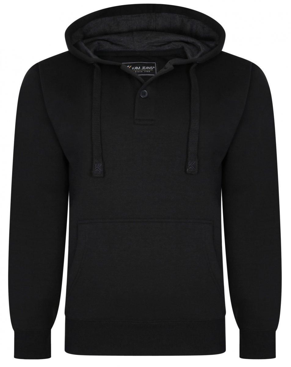 Dydžių vadovas - Kam Jeans 508B 1/4 Button Hoodie Black