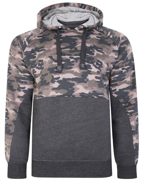 Dydžių vadovas - Kam Jeans 7036B Camo Pannelled Over The Head Hoody Charcoal