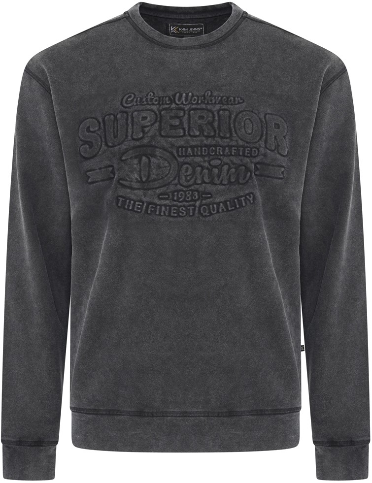 Dydžių vadovas - Kam Jeans 7065 Crew Neck Washed Embossed Sweatshirt Black