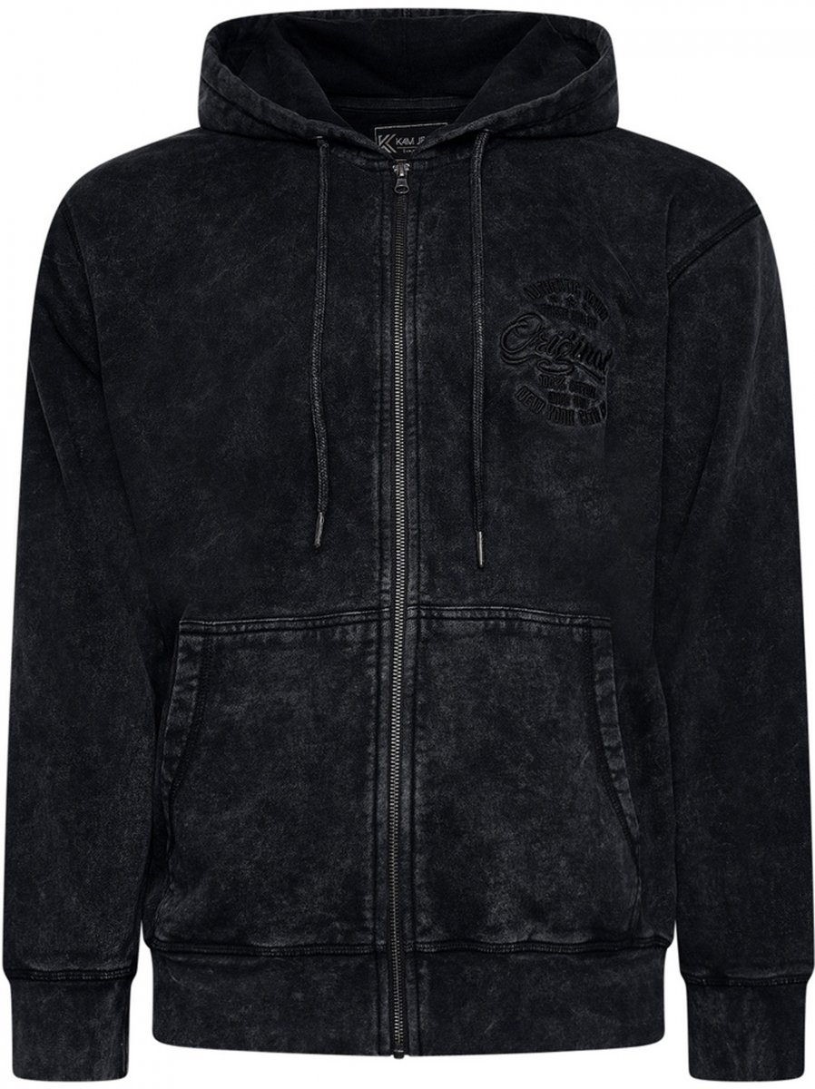 Dydžių vadovas - Kam Jeans 7082 Garment DYE with Zipper Hoodie Black