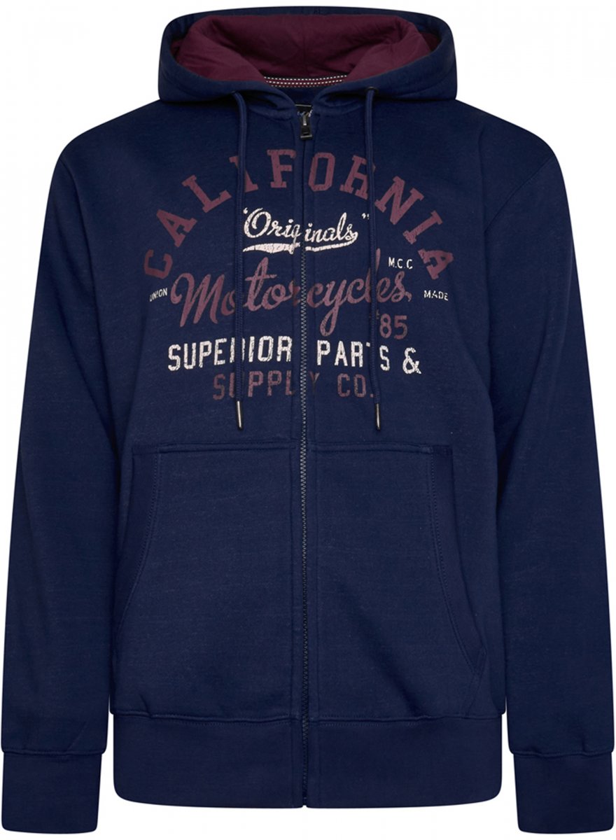 Dydžių vadovas - Kam Jeans 7085 Californai Zip Thru Hoodie Navy