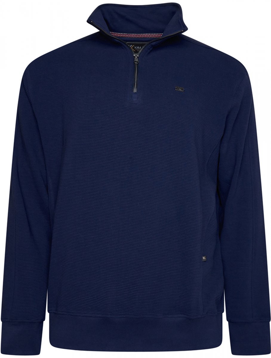 Dydžių vadovas - Kam Jeans 7090 1/4 Zip Jacquard Knit Self Stripe Sweatshirt Navy