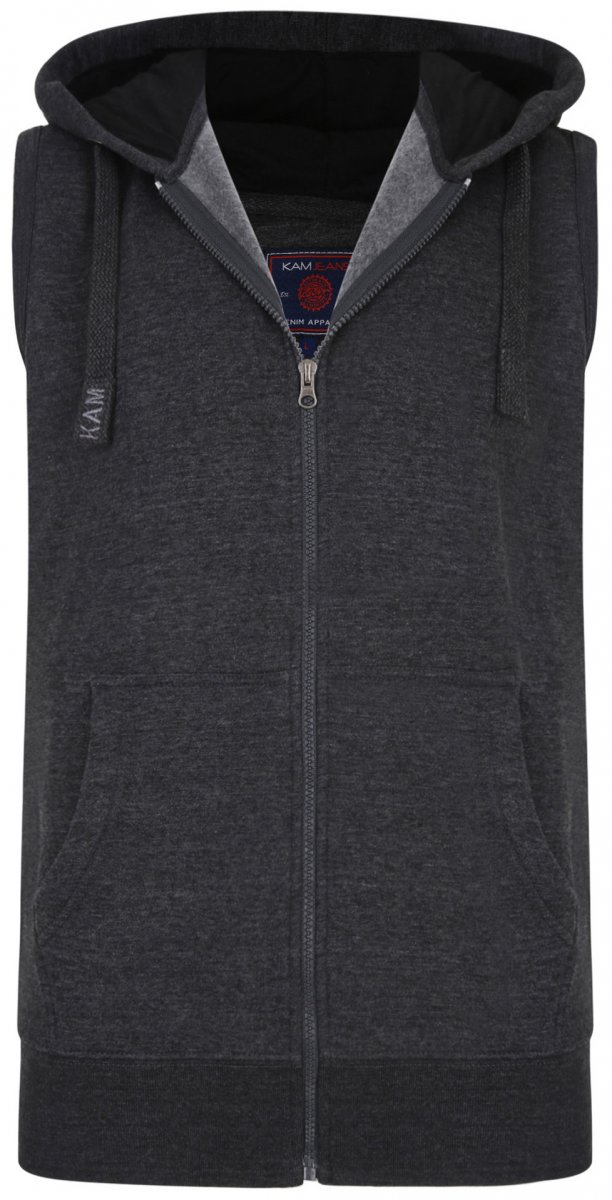 Dydžių vadovas - Kam Jeans Sleeveless Zip Thru Hoody Charcoal