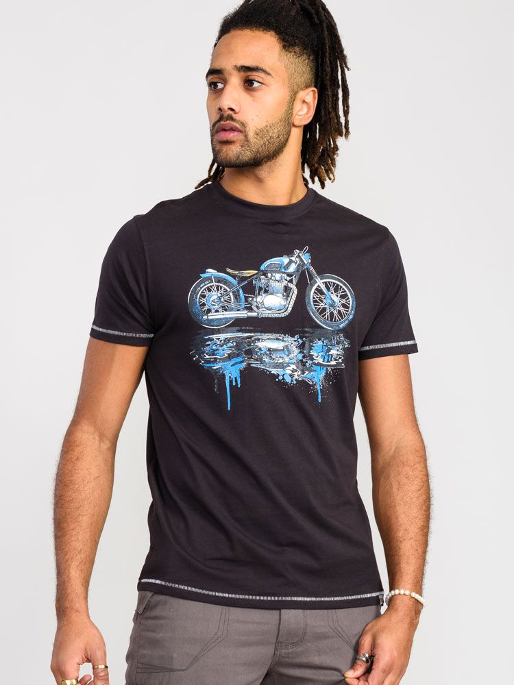 Dydžių vadovas - D555 Fritton Bike With Shadow And Drips Printed T-Shirt