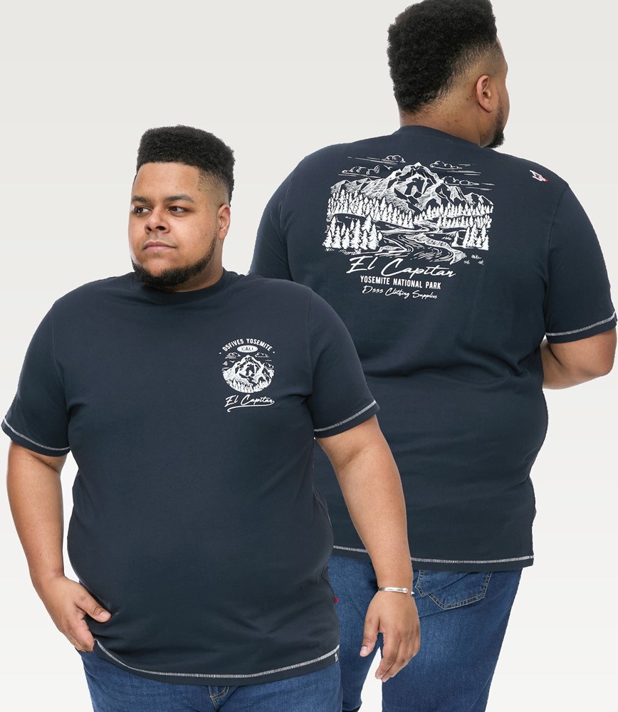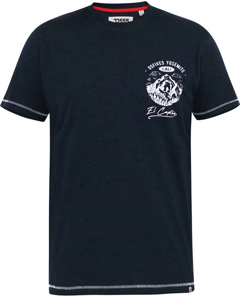 Dydžių vadovas - D555 GRAHAM YOSEMITE Chest And Back Printed Crew Neck T-Shirt Navy