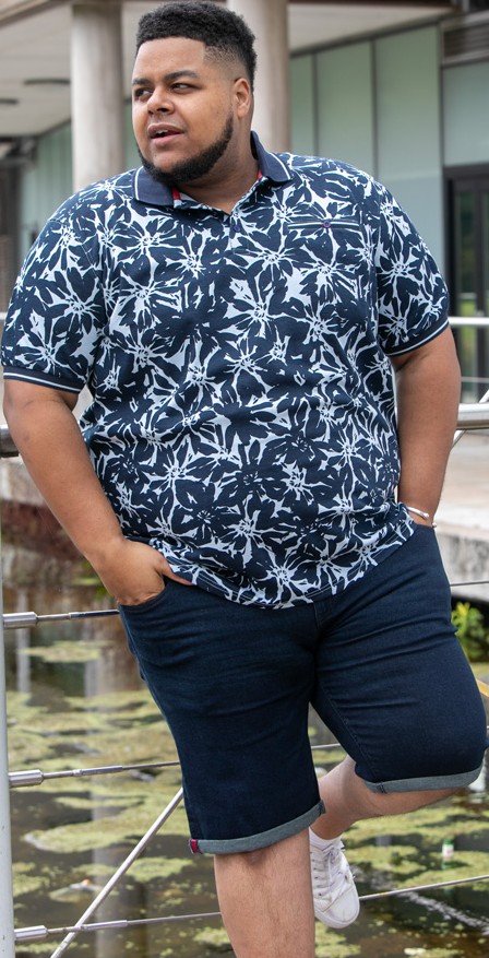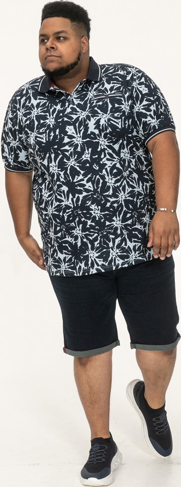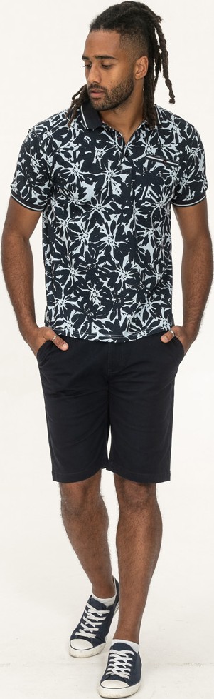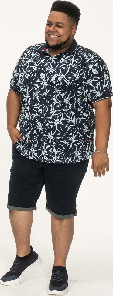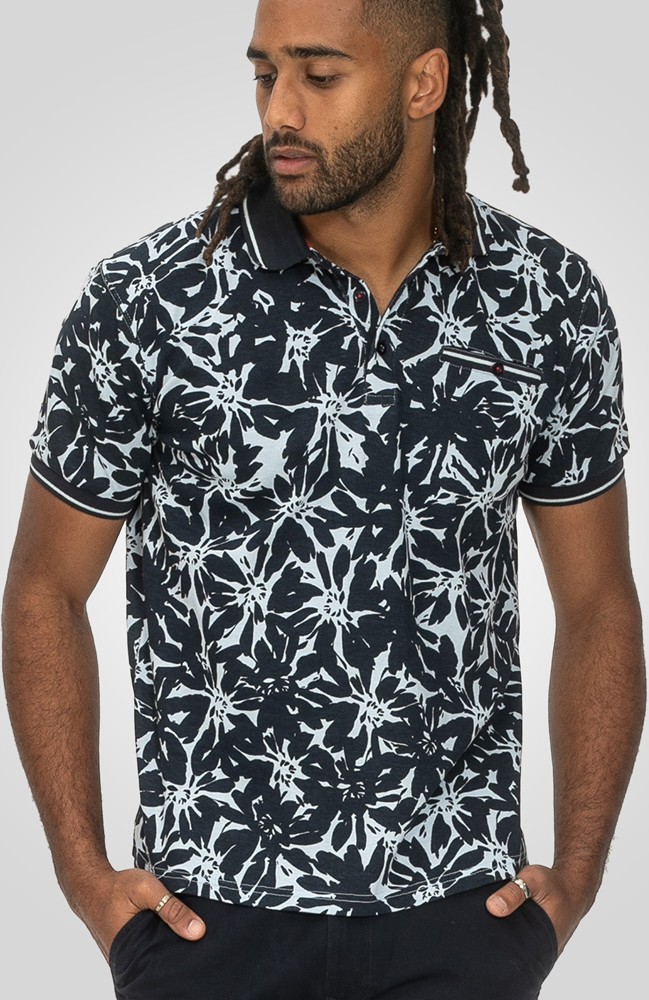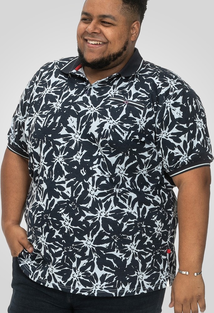 Dydžių vadovas - D555 Halifax AOP Hawaiian Print Short Sleeve Polo Blue