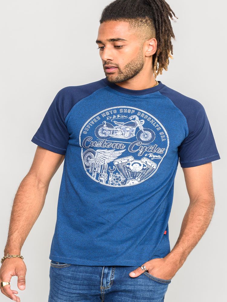 Dydžių vadovas - D555 Porter Raglan Sleeve Printed T-Shirt Blue