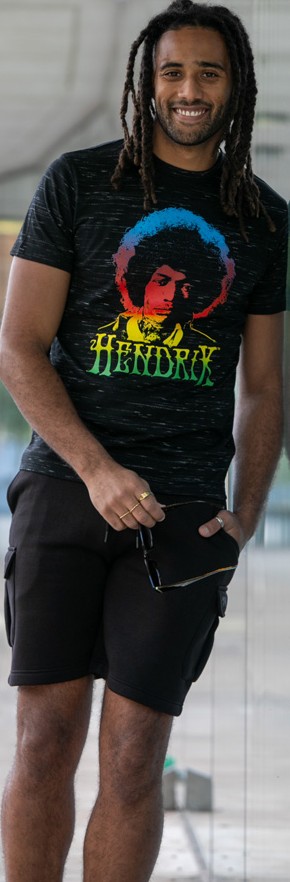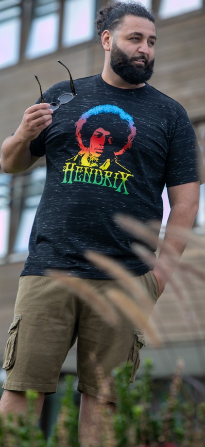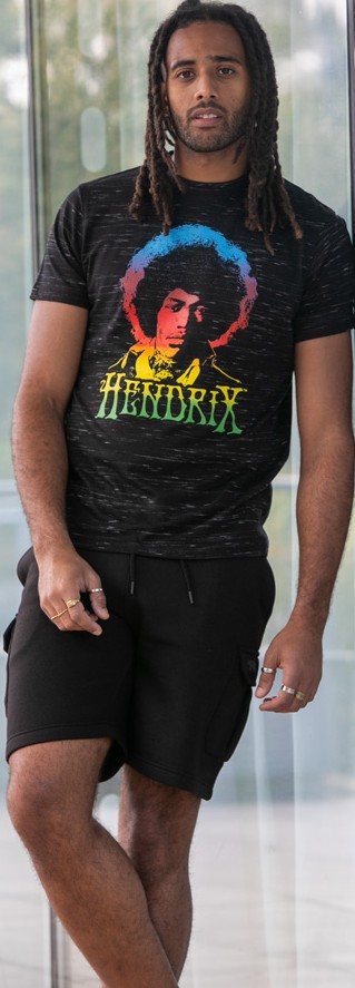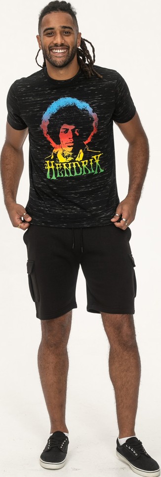 Dydžių vadovas - D555 Hendrix Official Jimi Hendrix Printed Crew Neck T-Shirt Black Reno