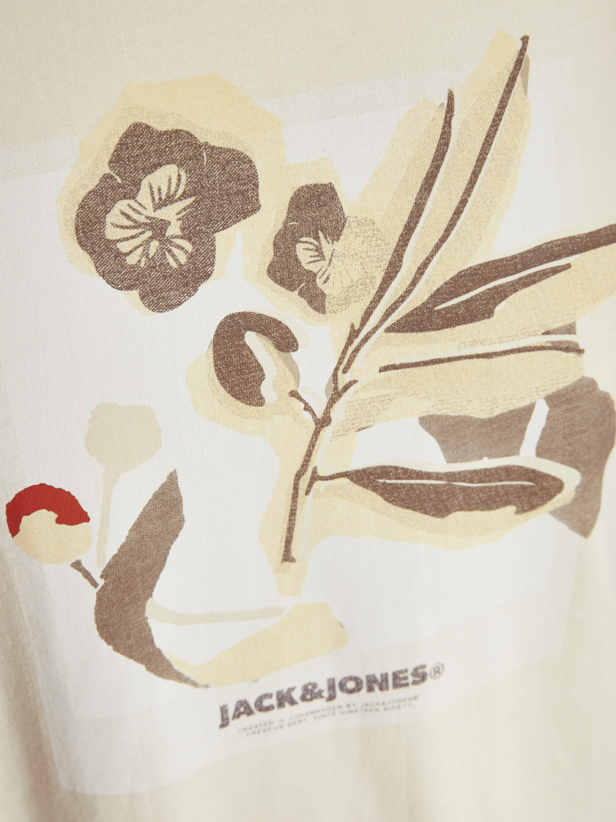 Dydžių vadovas - Jack & Jones Almeria Front Print Crew Neck T-Shirt Antique White
