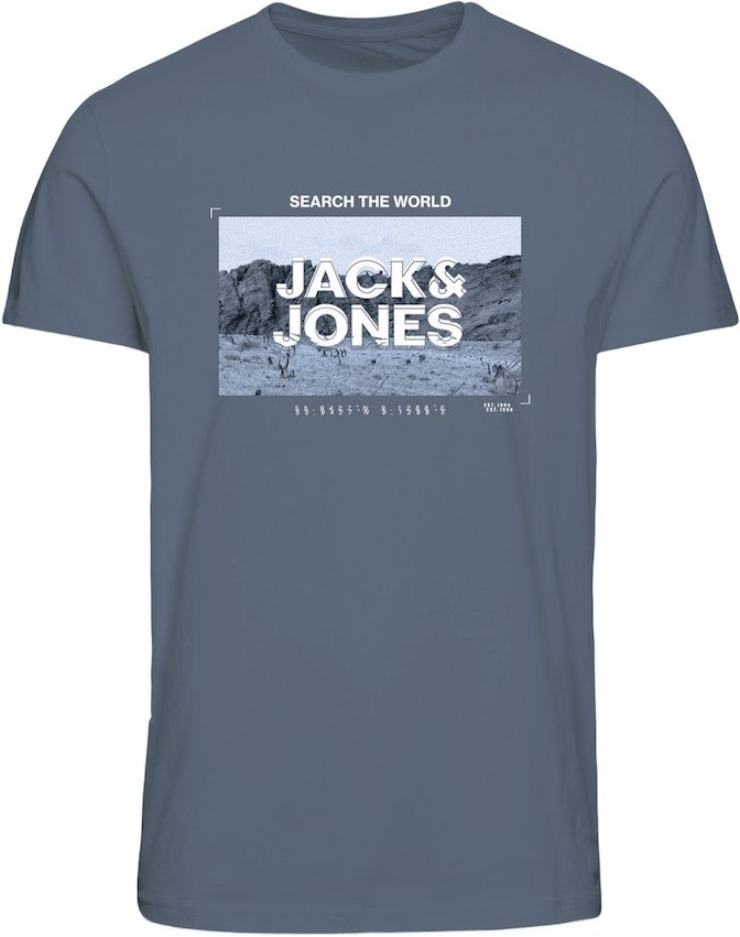 Dydžių vadovas - Jack & Jones RAY Photo T-Shirt Flint Stone Blue
