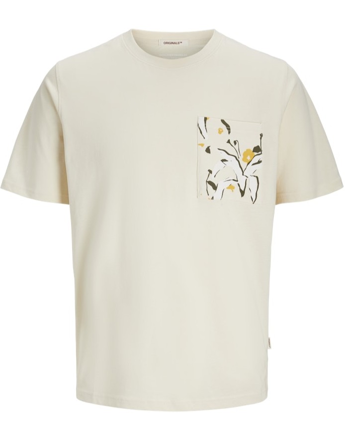 Dydžių vadovas - Jack & Jones Tavira Aop Pocket Crew Neck T-Shirt Antique White