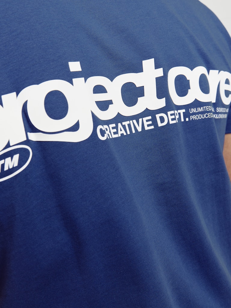 Dydžių vadovas - Jack & Jones Union Front & Back Print Crew Neck T-Shirt Beaucoup Blue