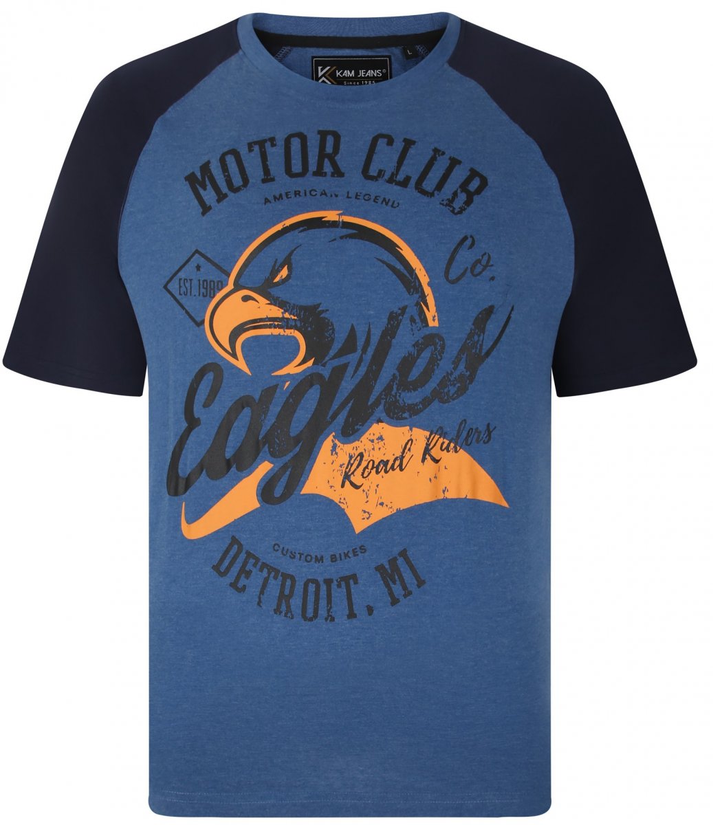 Dydžių vadovas - Kam Jeans 5737 Eagle Print Raglan T-Shirt Blue