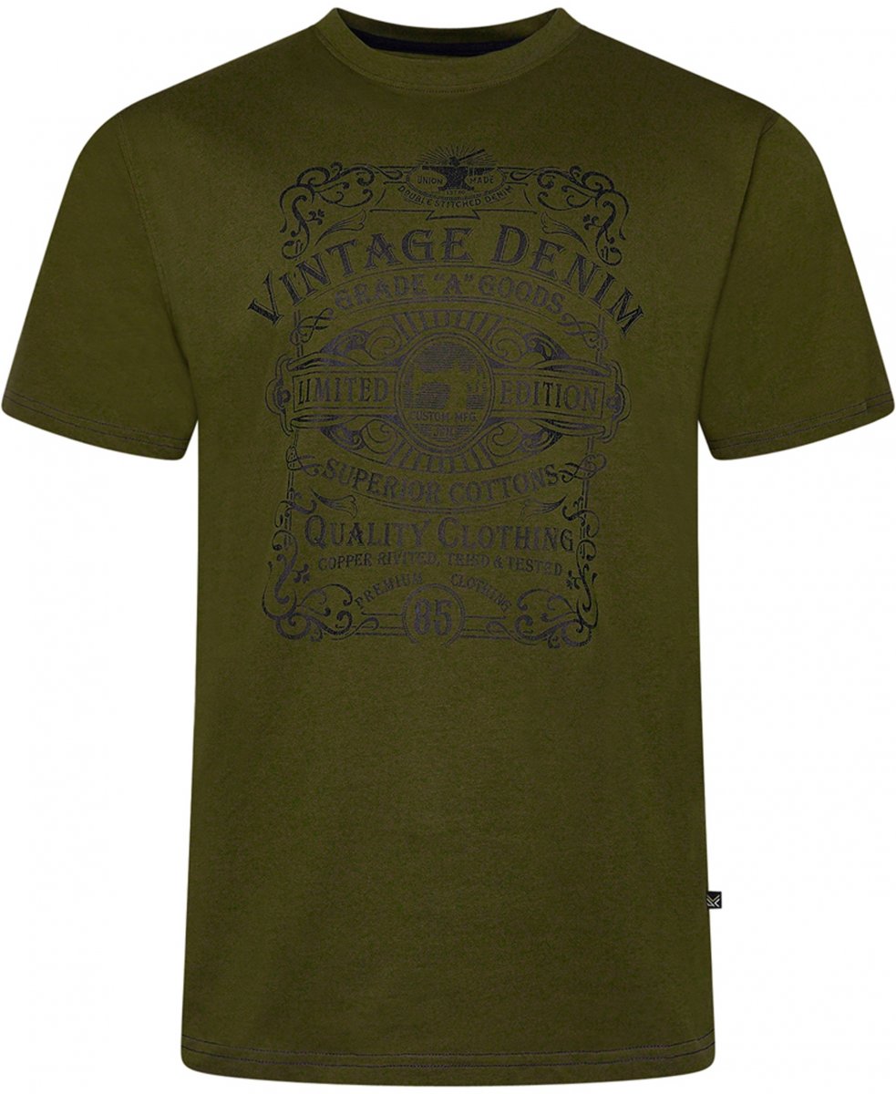 Dydžių vadovas - Kam Jeans 5786 Vintage Denim Print Tee Olive