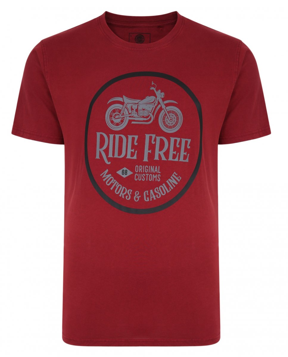 Dydžių vadovas - Kam Jeans Ride Free Crew Neck T-Shirt Wine