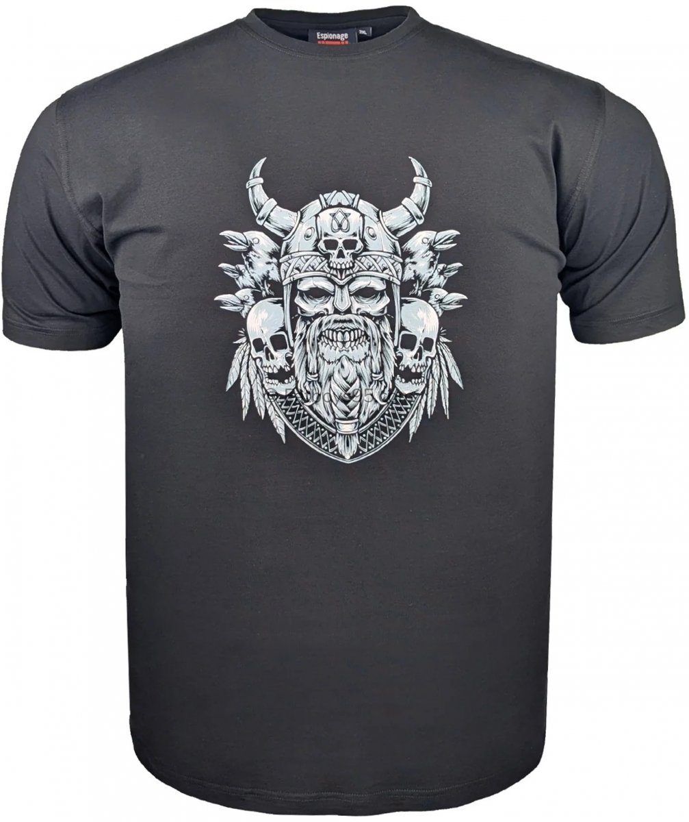 Dydžių vadovas - Espionage T441 Viking Skull Print T-Shirt Black