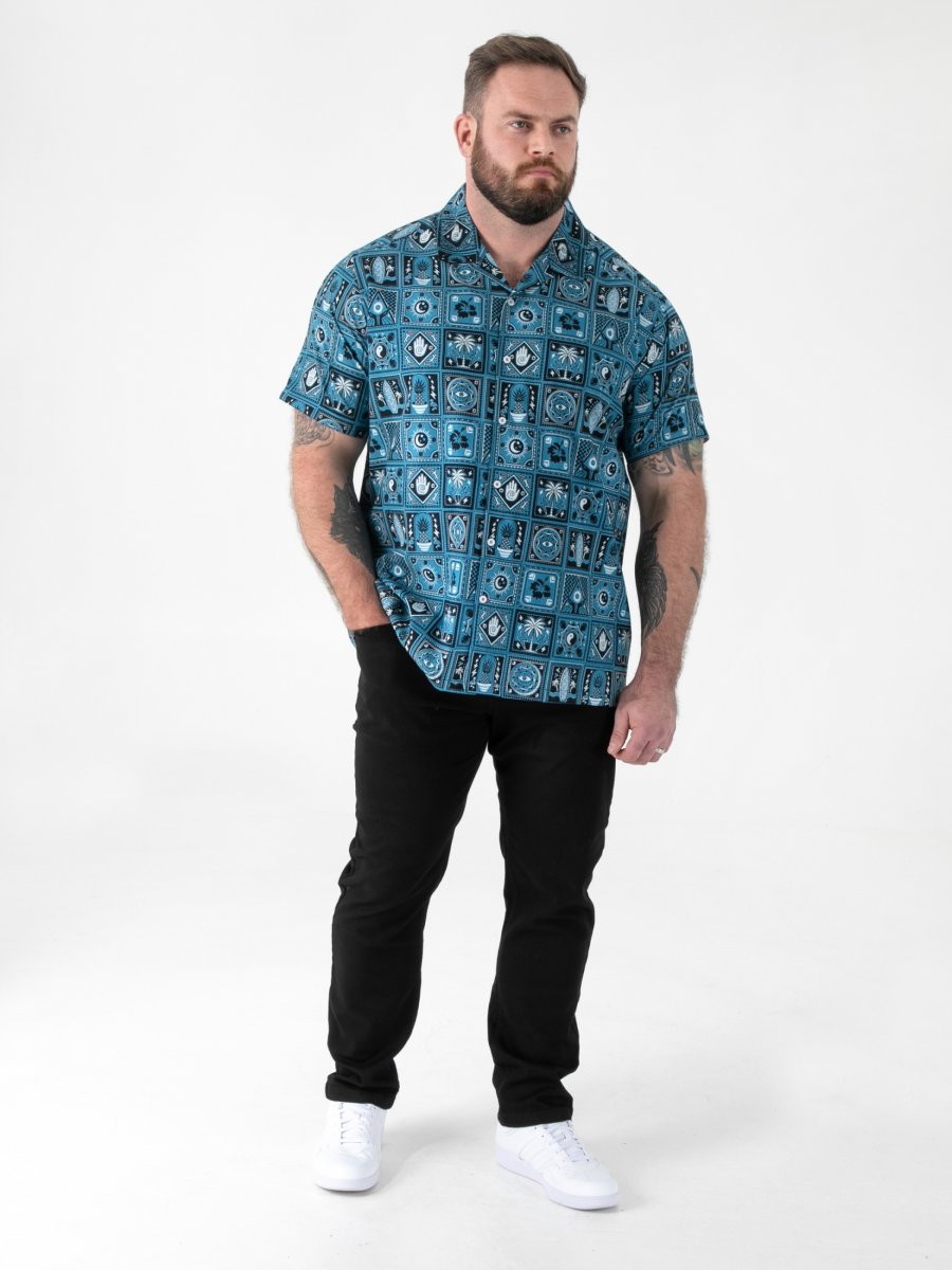 Dydžių vadovas - D555 Hawkins Printed Cuban Collar Resort Short Sleeve Shirt Teal