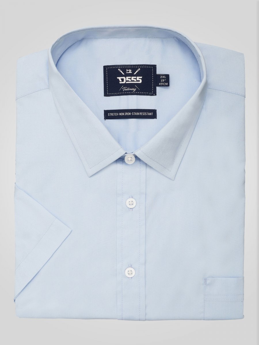 Dydžių vadovas - D555 Lucas Dėmėms Atsparūs Nelyginami Tamprūs Marškiniai Trumpomis Rankovėmis Dangaus Mėlyni