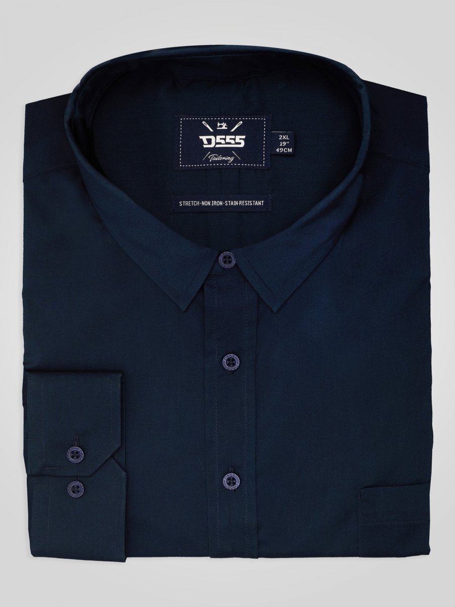 Dydžių vadovas - D555 Oliver Dėmėms Atsparūs Nelyginami Tamprūs Marškiniai Ilgomis Rankovėmis Tamsiai Mėlyni