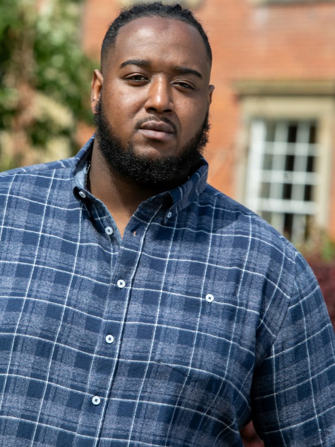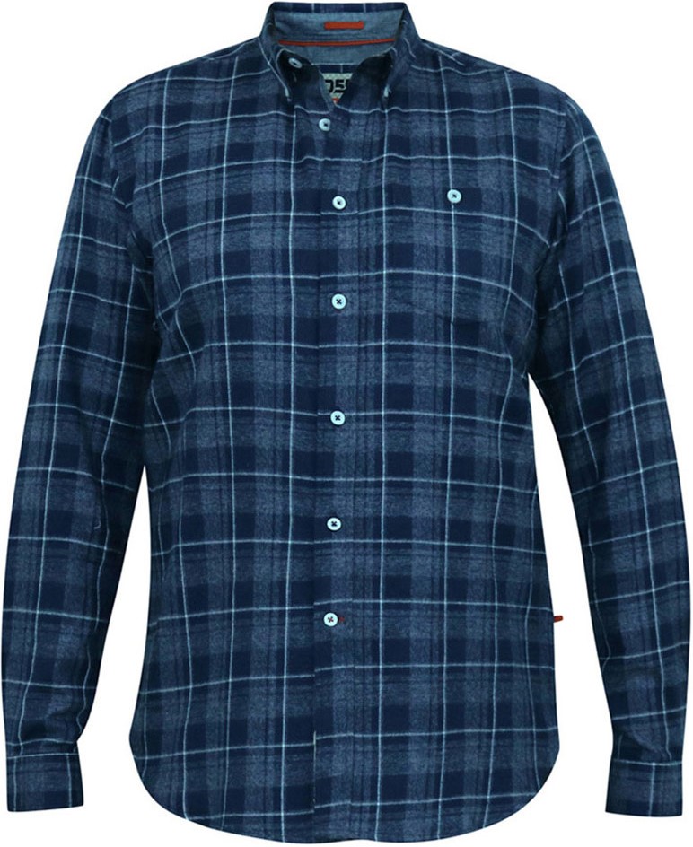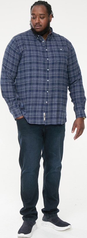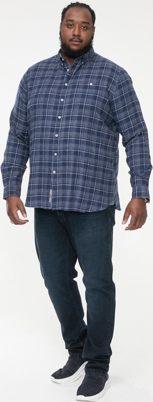 Dydžių vadovas - D555 SONNY Navy Check Long Sleeve Shirt With Chest Patch Pocket & Button Down Collar Navy Check