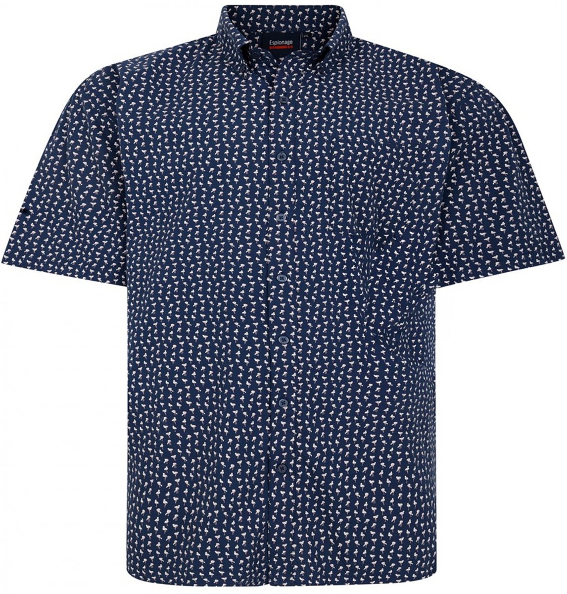 Dydžių vadovas - Espionage SH439 Mini Flamingo Printed Short Sleeve Shirt Navy