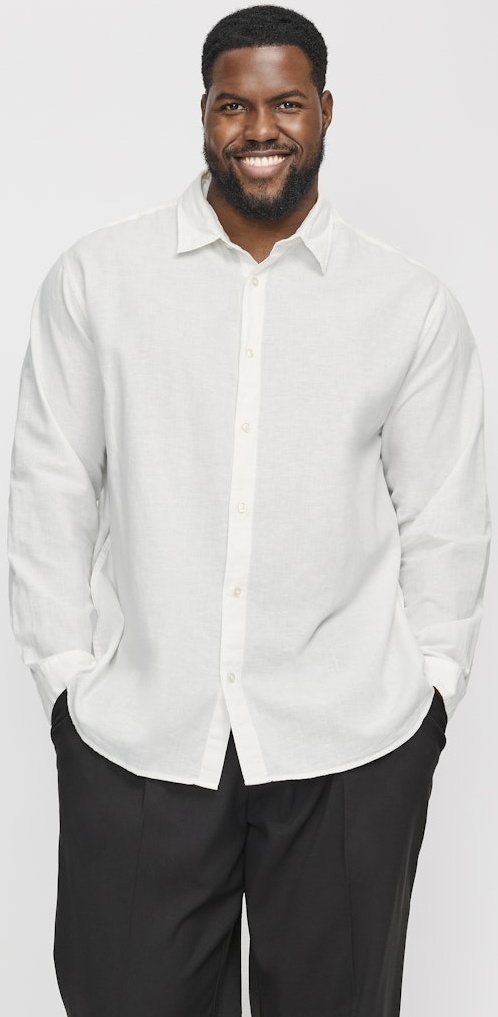 Dydžių vadovas - Jack & Jones Breeze Linen Blend Long Sleeve Shirt White