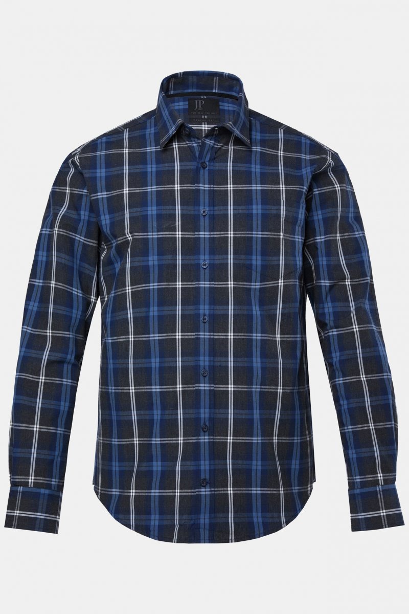 Dydžių vadovas - JP1880 Checked Shirt Long Sleeve Kent Collar Anthracite