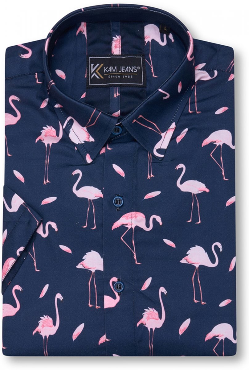 Dydžių vadovas - Kam Jeans 6068 Flamingo Short Sleeve Shirt Navy