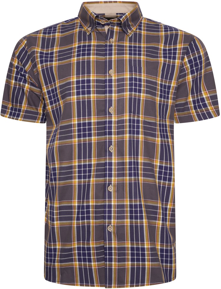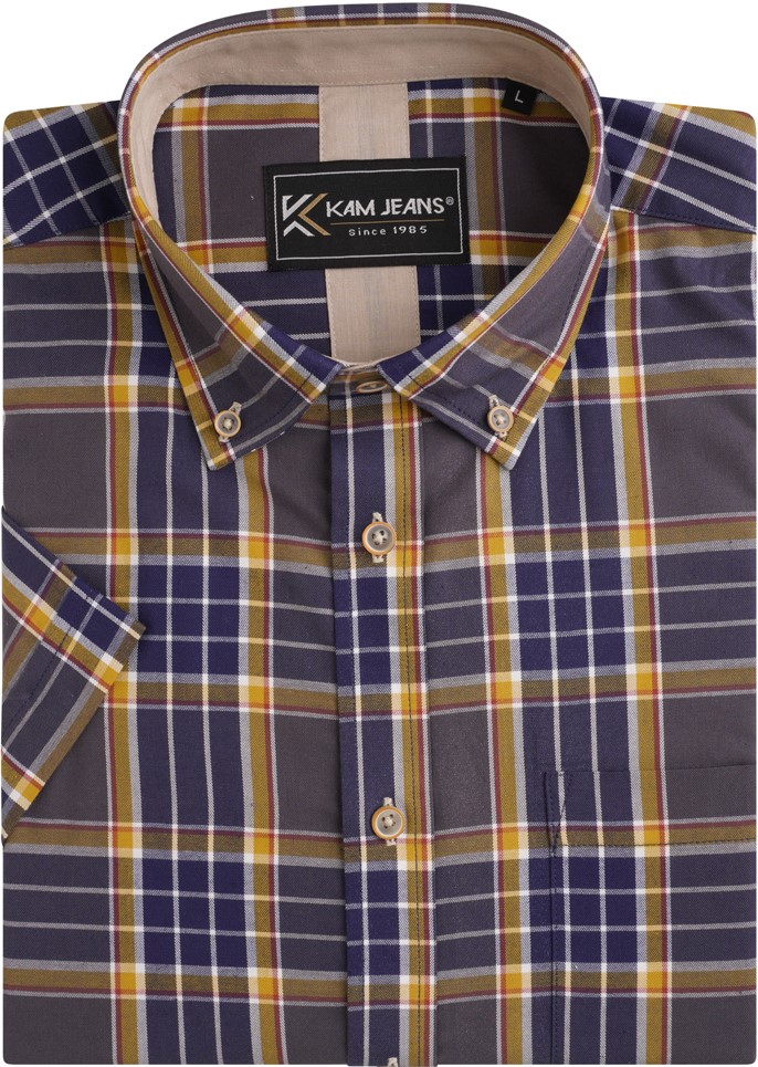 Dydžių vadovas - Kam Jeans 6282 Casual SS Check Shirt Navy