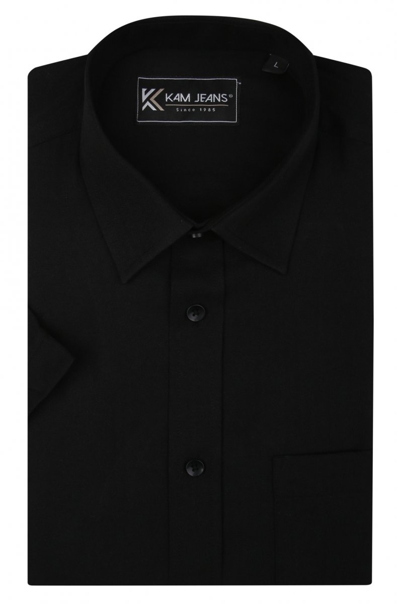 Dydžių vadovas - Kam Jeans 6283 Casual SS Herringbone Shirt Black