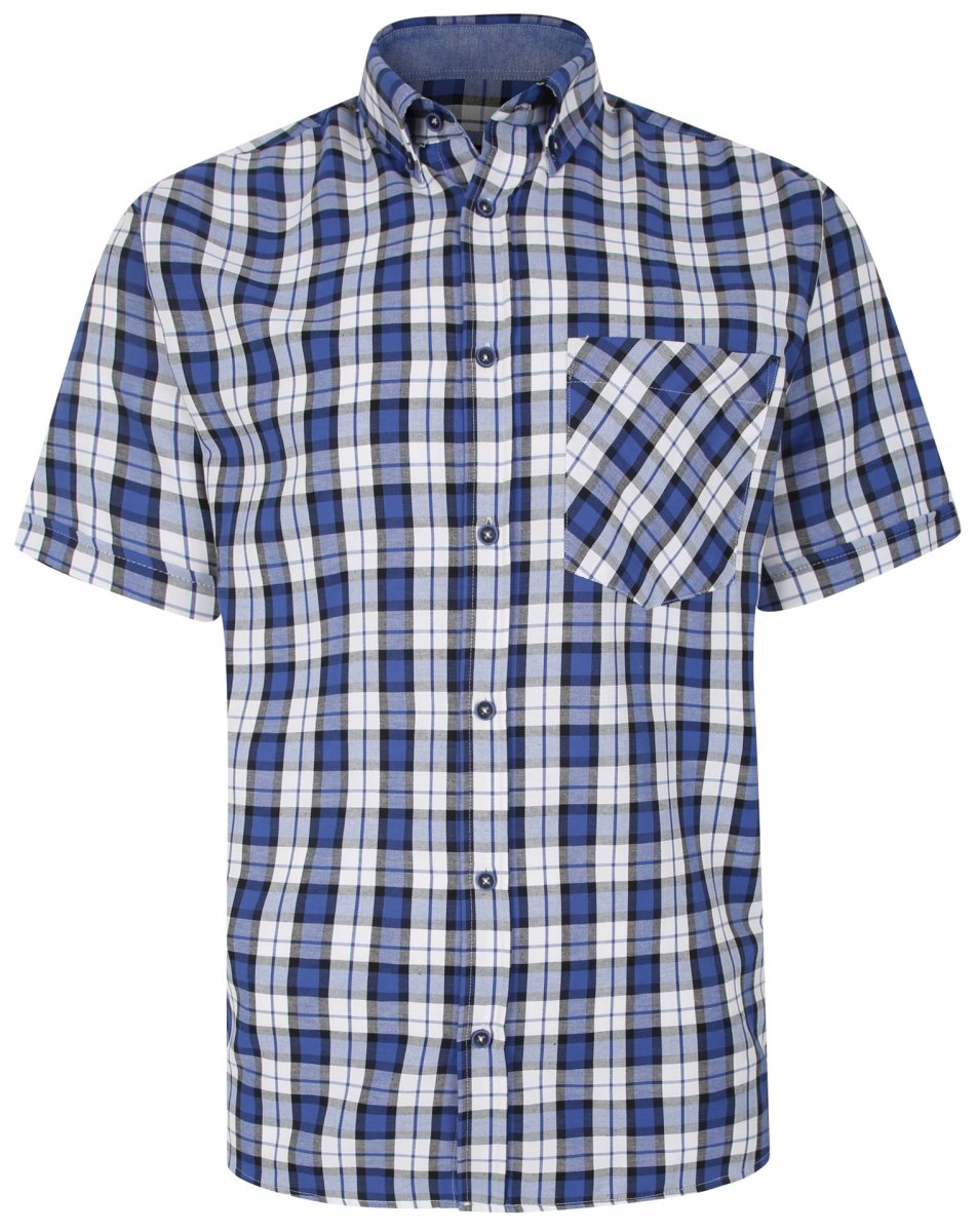Dydžių vadovas - Kam Jeans 6286 Casual SS Check Shirt Blue