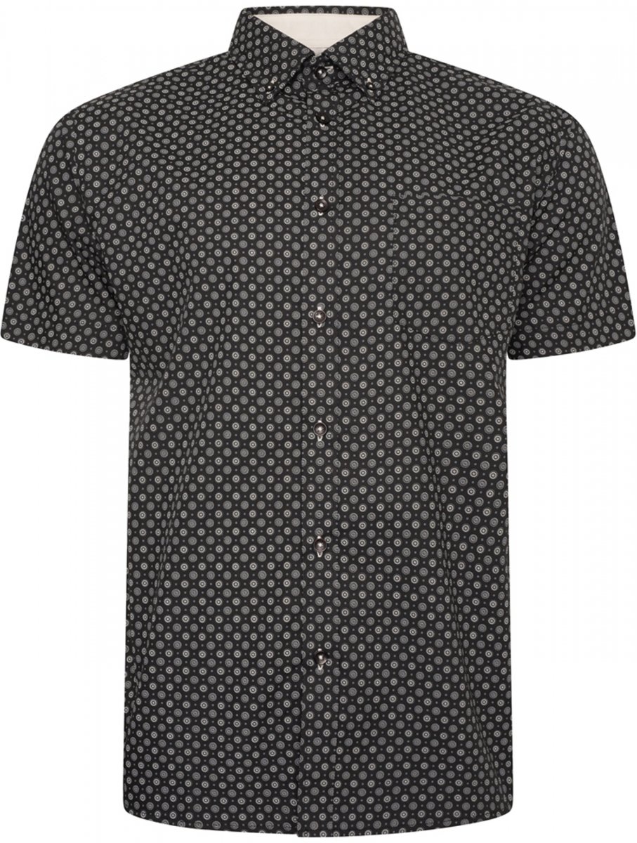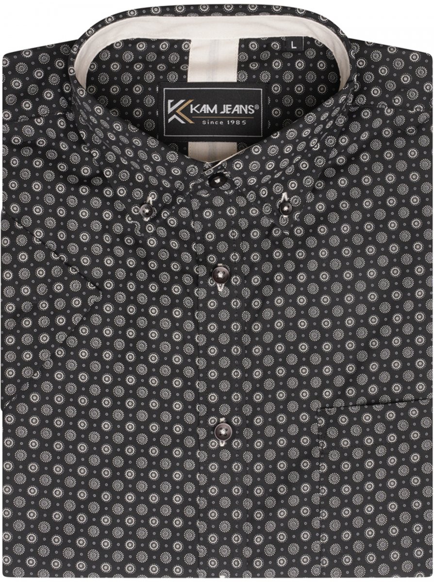 Dydžių vadovas - Kam Jeans 6296 All Over Geo Short Sleeve Shirt Black