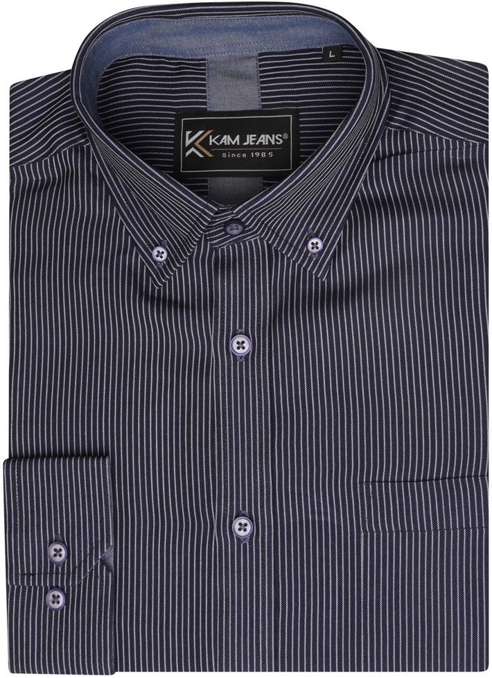 Dydžių vadovas - Kam Jeans 6300 Long Sleeve Dobby Stripe Shirt Dark Grey