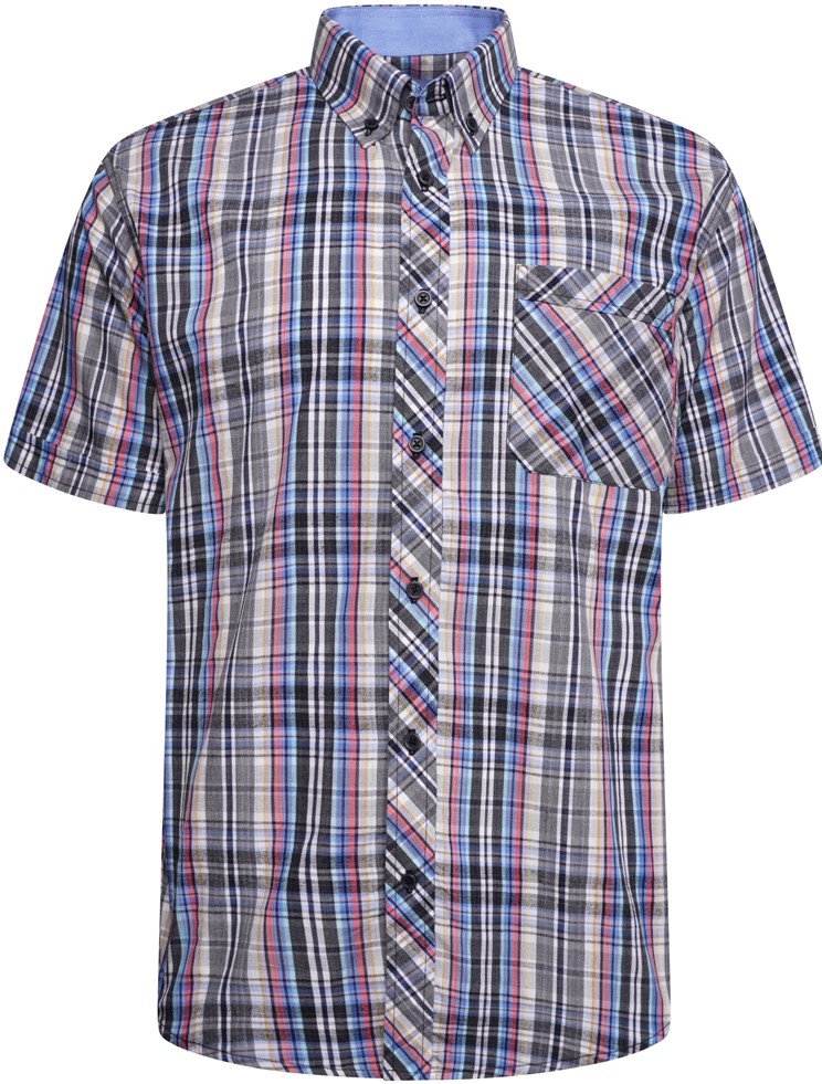 Dydžių vadovas - Kam Jeans 6313 Casual Check Short Sleeve Shirt Grey