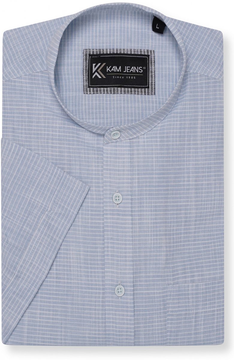 Dydžių vadovas - Kam Jeans 6334 Striped Grandad Short Sleeve Shirt Blue