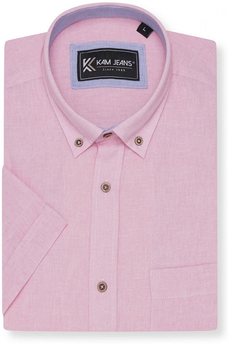 Dydžių vadovas - Kam Jeans 6340 Linen Mix Short Sleeve Shirt Pink