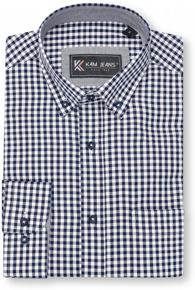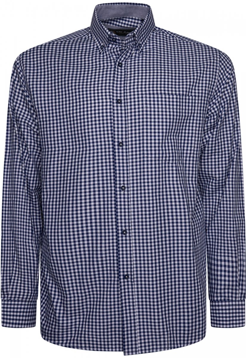 Dydžių vadovas - Kam Jeans 6351 Classic Gingham Shirt Long Sleeve Navy