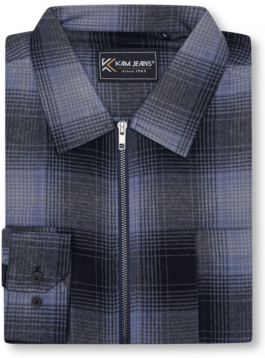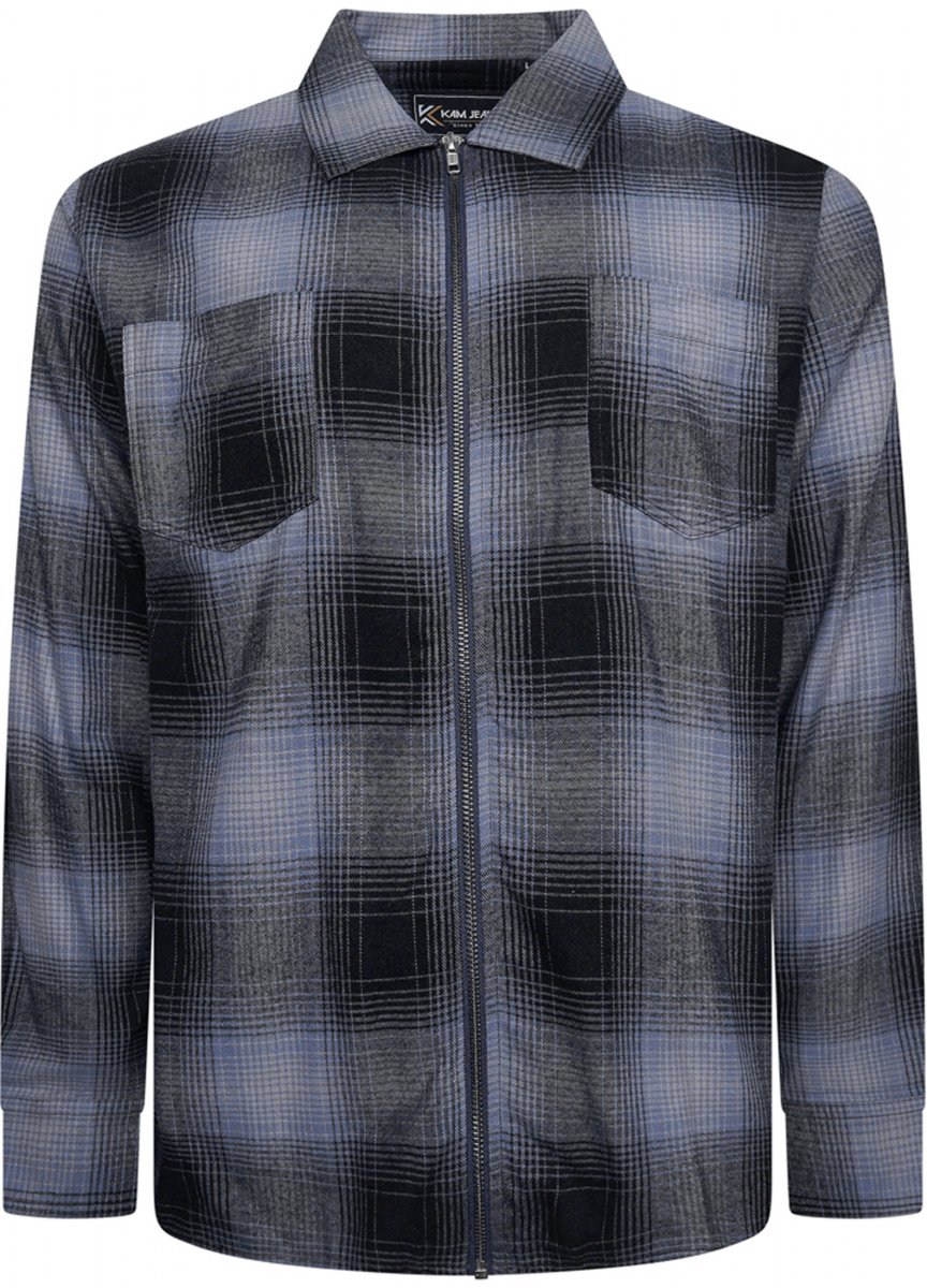 Dydžių vadovas - Kam Jeans 6354 Zip Through Check Shirt Charcoal