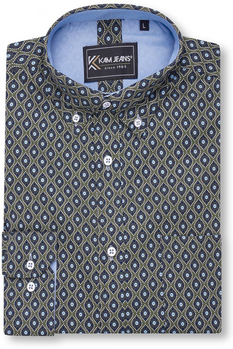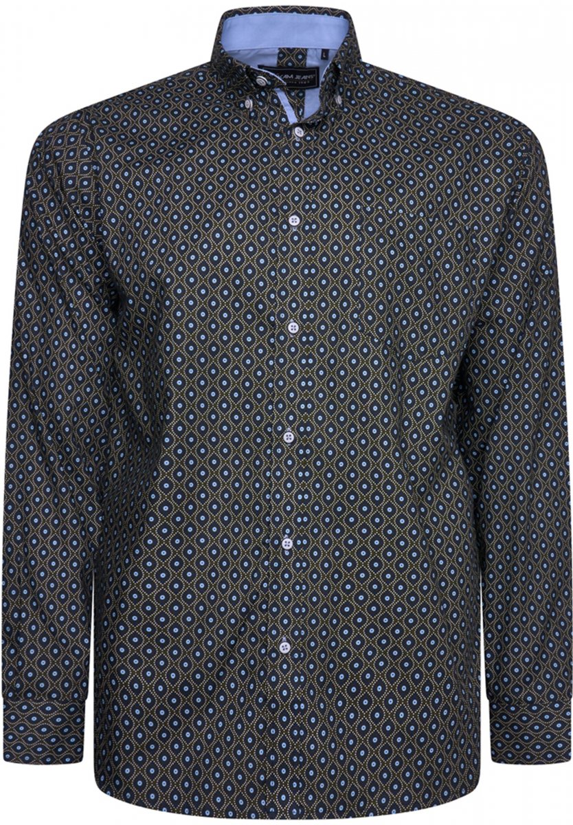 Dydžių vadovas - Kam Jeans 6362 All Over Eye Print Long Sleeve Navy