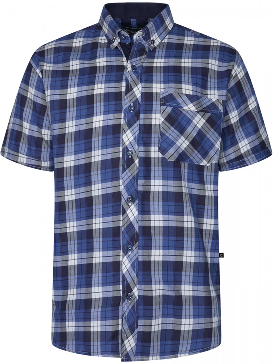 Dydžių vadovas - Kam Jeans 6369 Checked Short Sleeve Shirt Blue