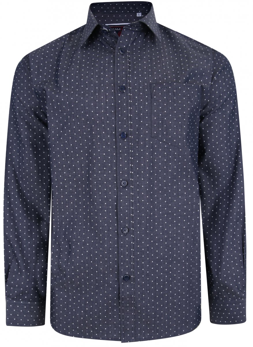 Dydžių vadovas - Kam Jeans KBS 6212 Star Print Chambray Shirt Indigo
