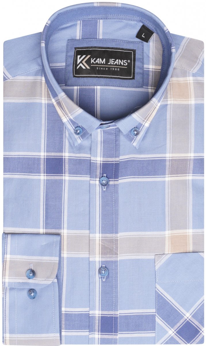 Dydžių vadovas - Kam Jeans P038 LS Premium Cotton Check Shirt Denim