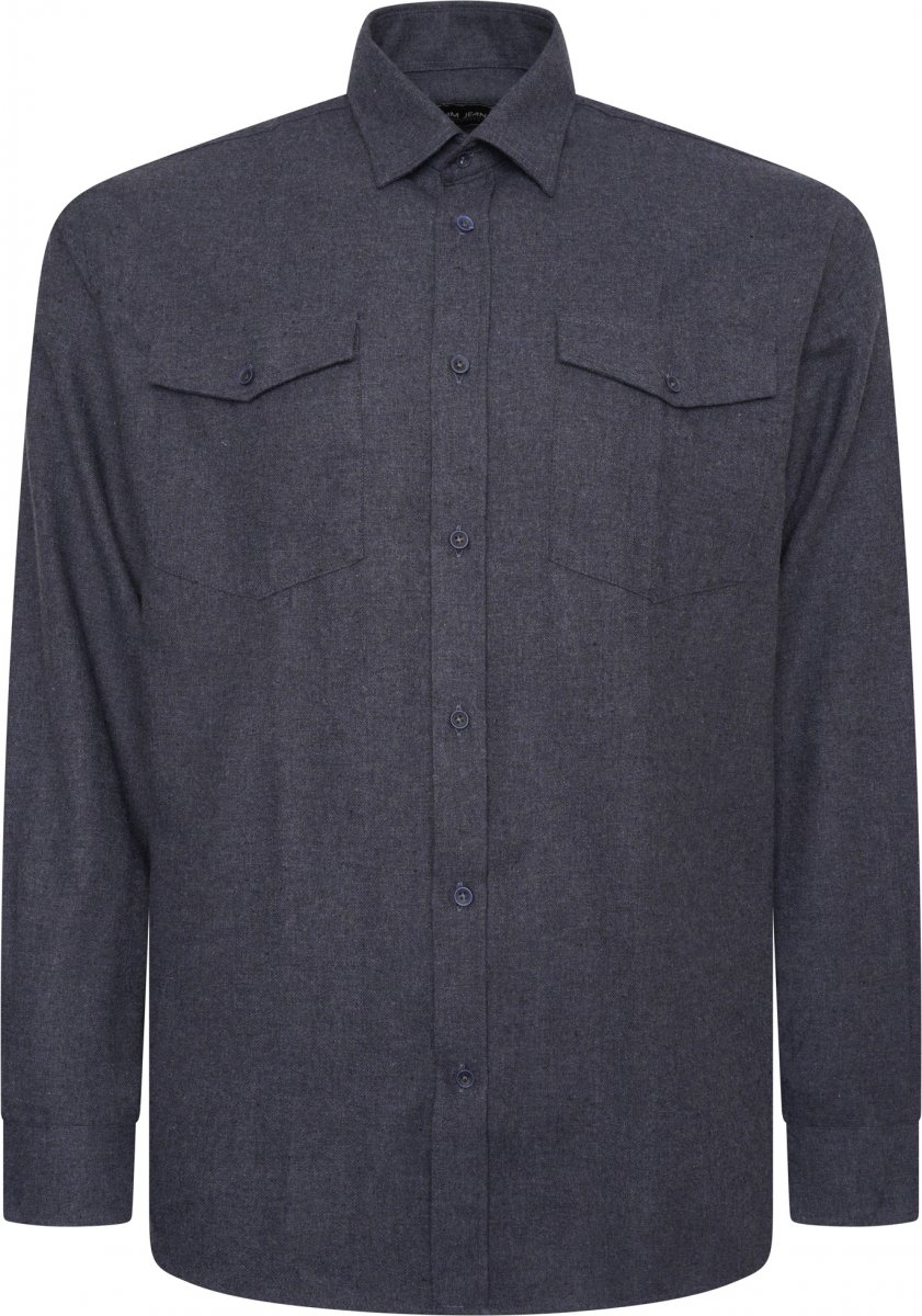 Dydžių vadovas - Kam Jeans P042 Premium Brushed Herringbone Long Sleeve Shirt Indigo