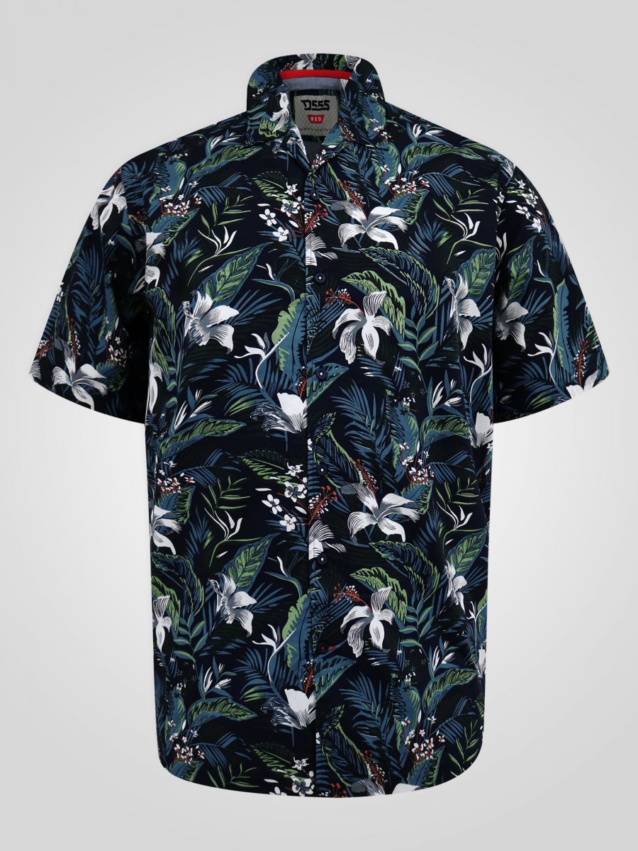 Dydžių vadovas - D555 Corden Hawaiian AOP Cuban Collar Resort Short Sleeve Navy